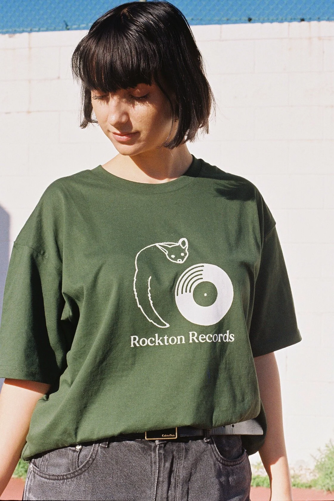 Rockton Records ‘possum’ logo graphic hand screen printed on a heavy cotton tee.